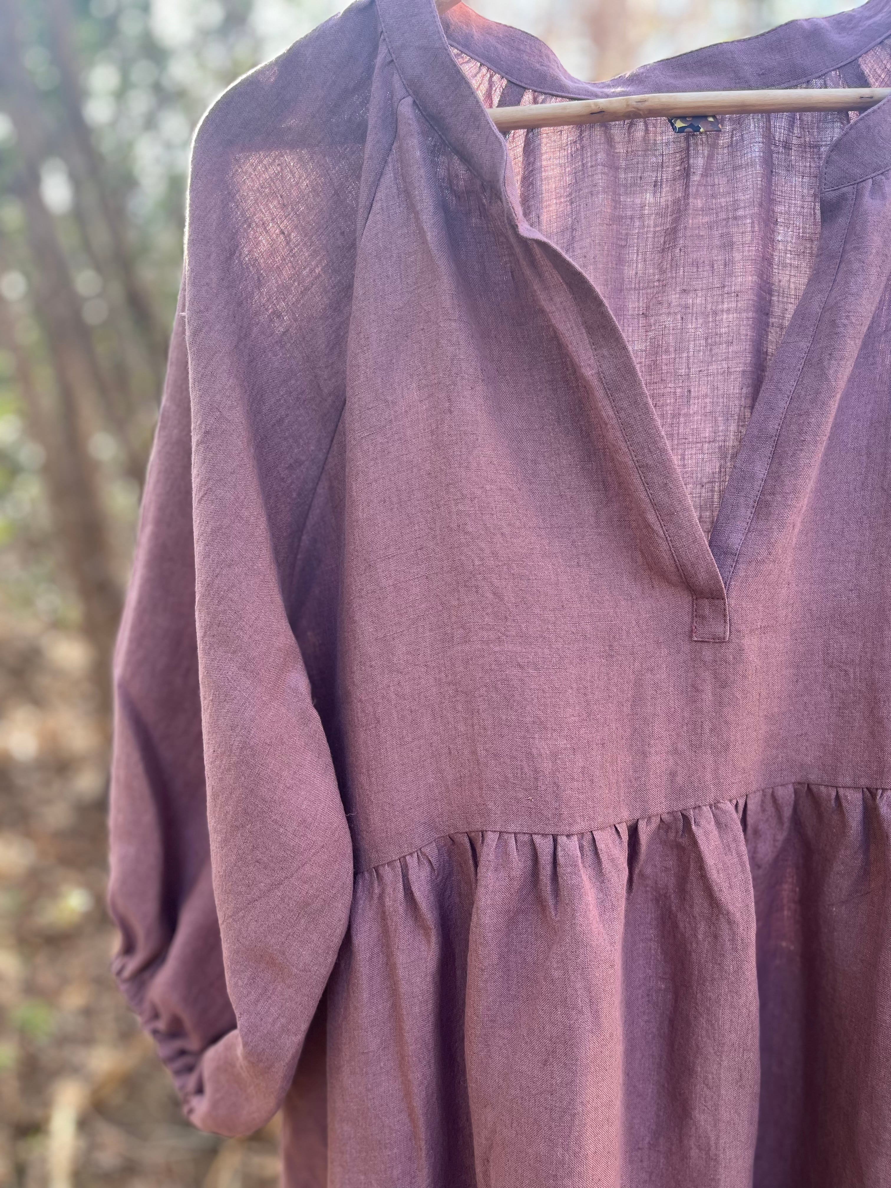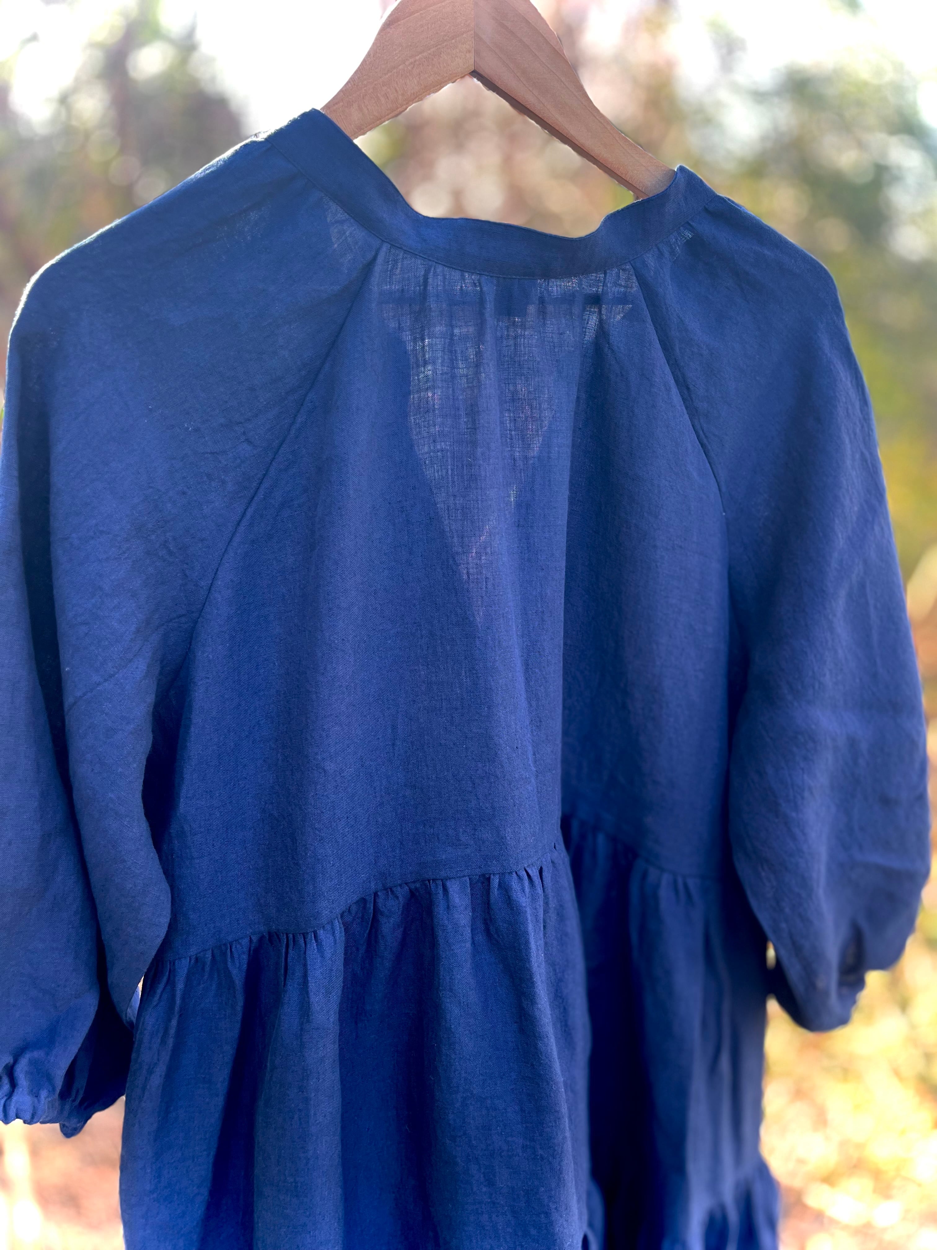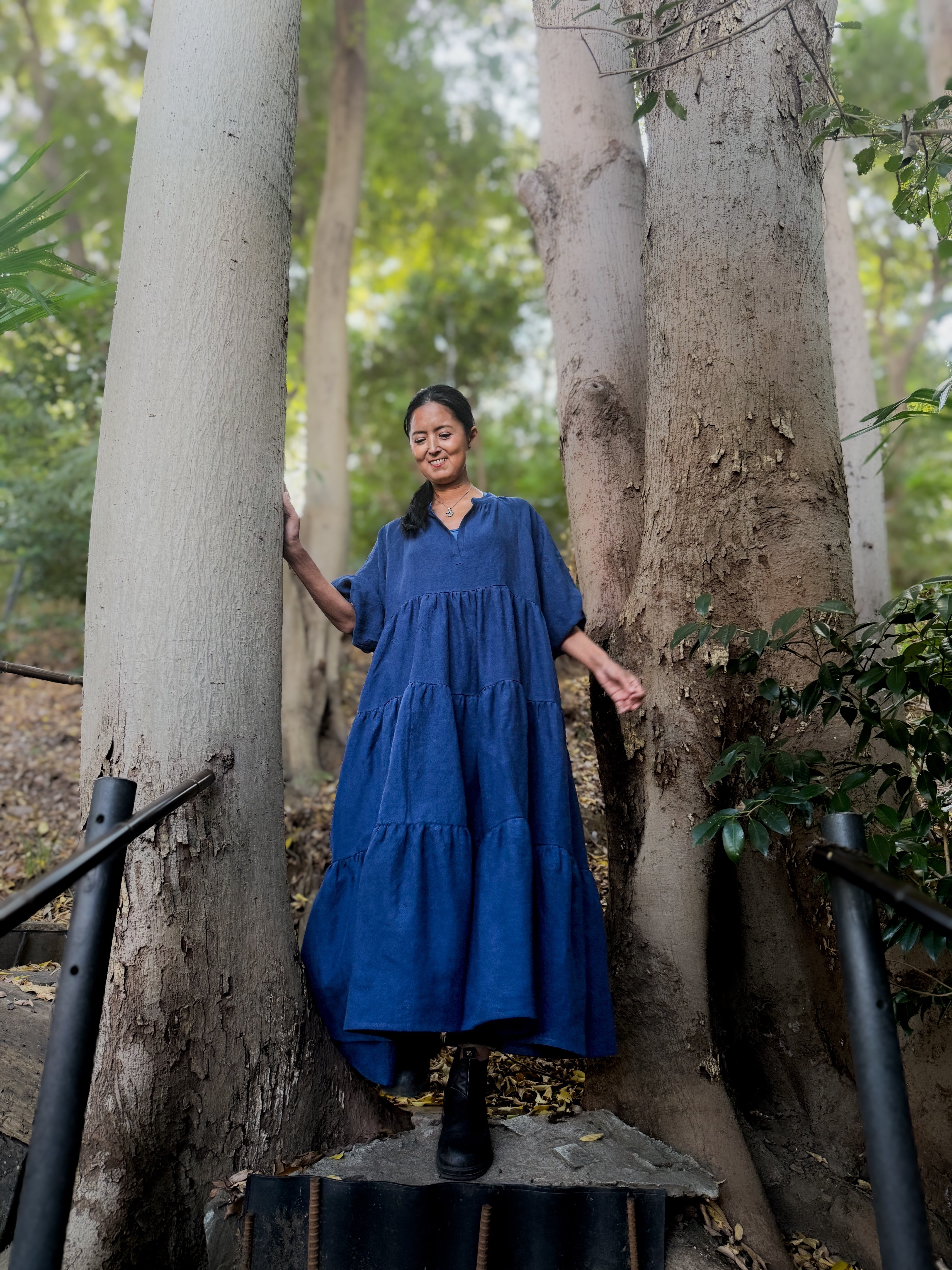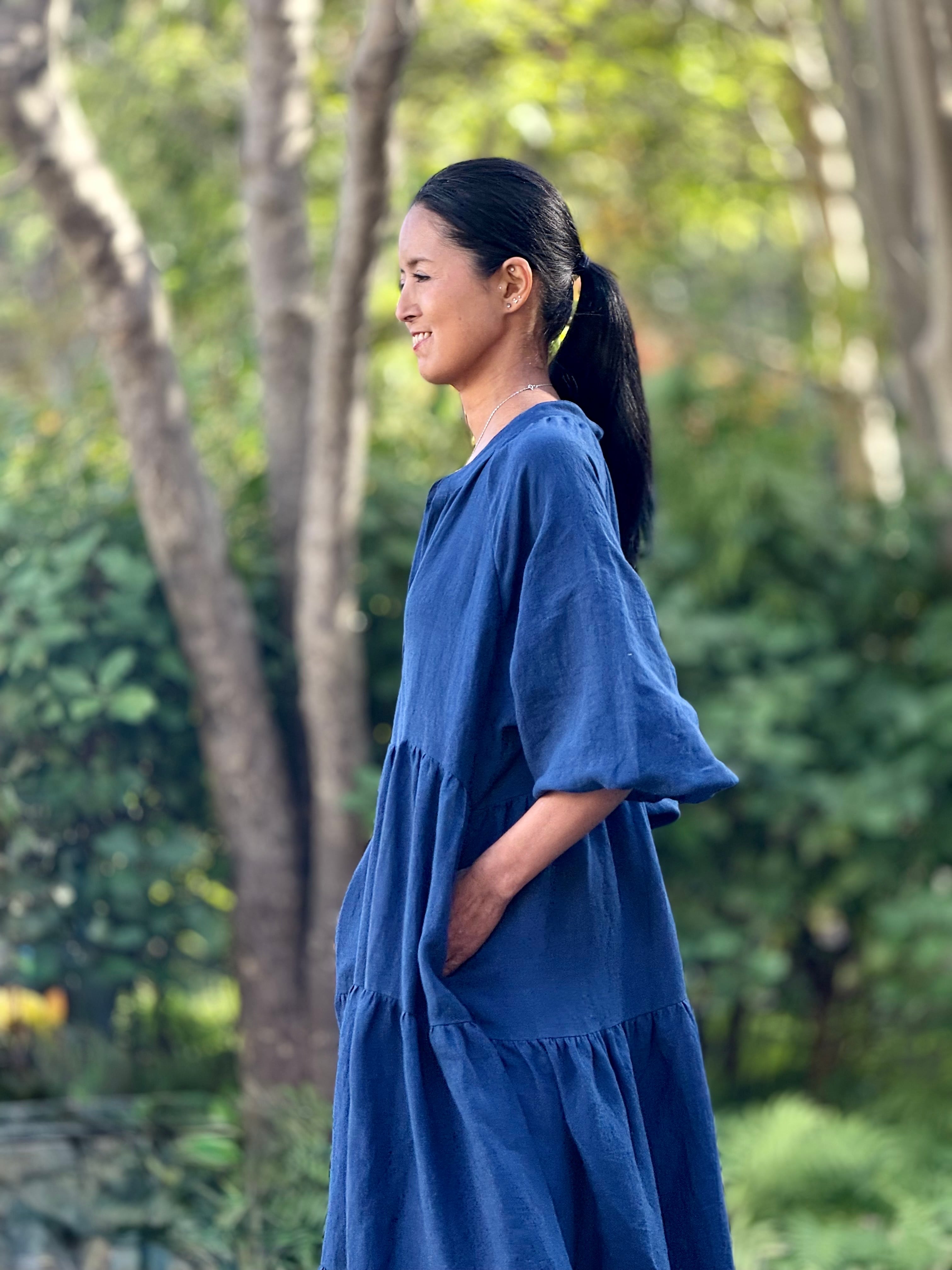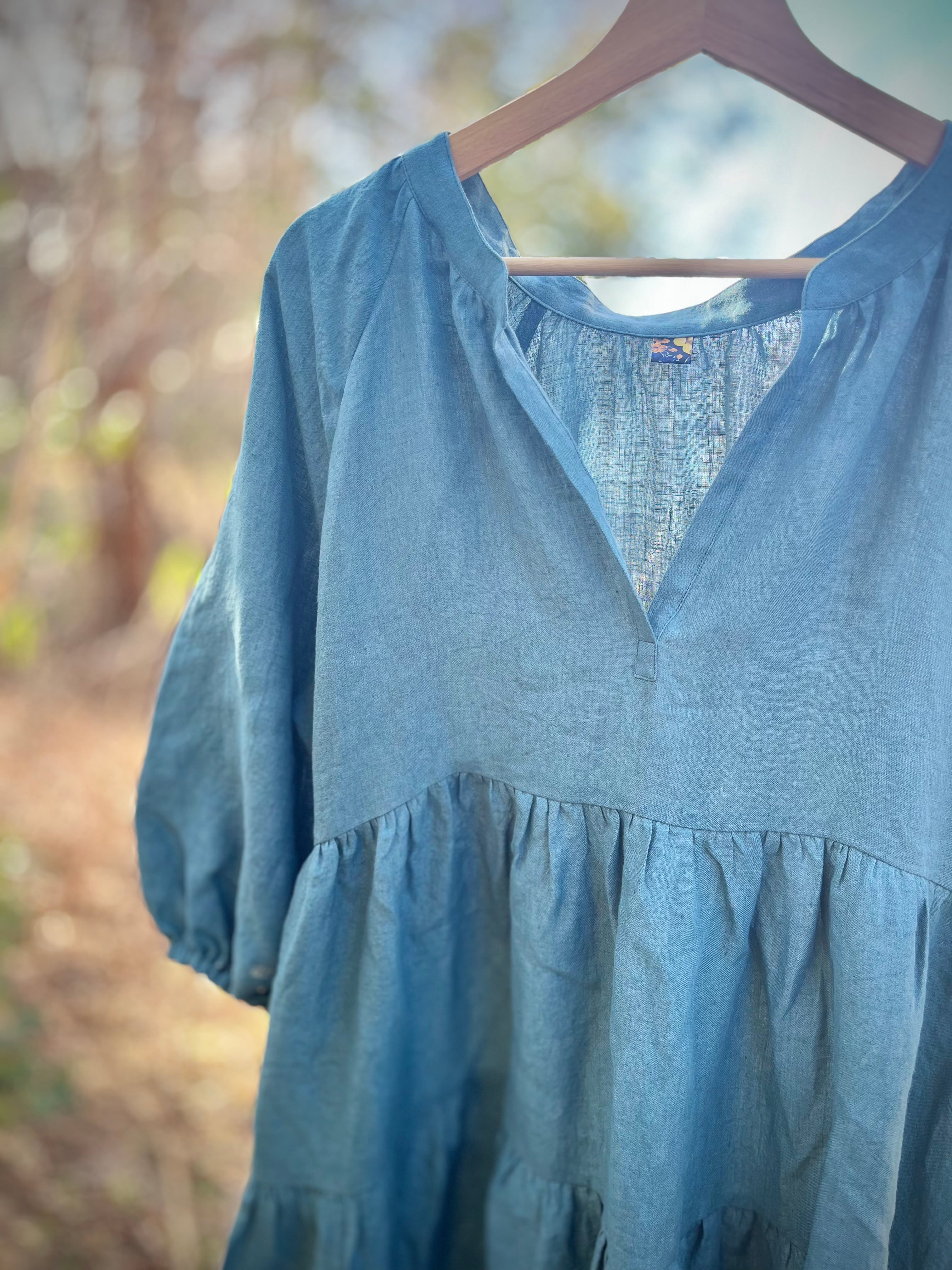 上質なベルギーリネンをたっぷり使ったティアードドレス。